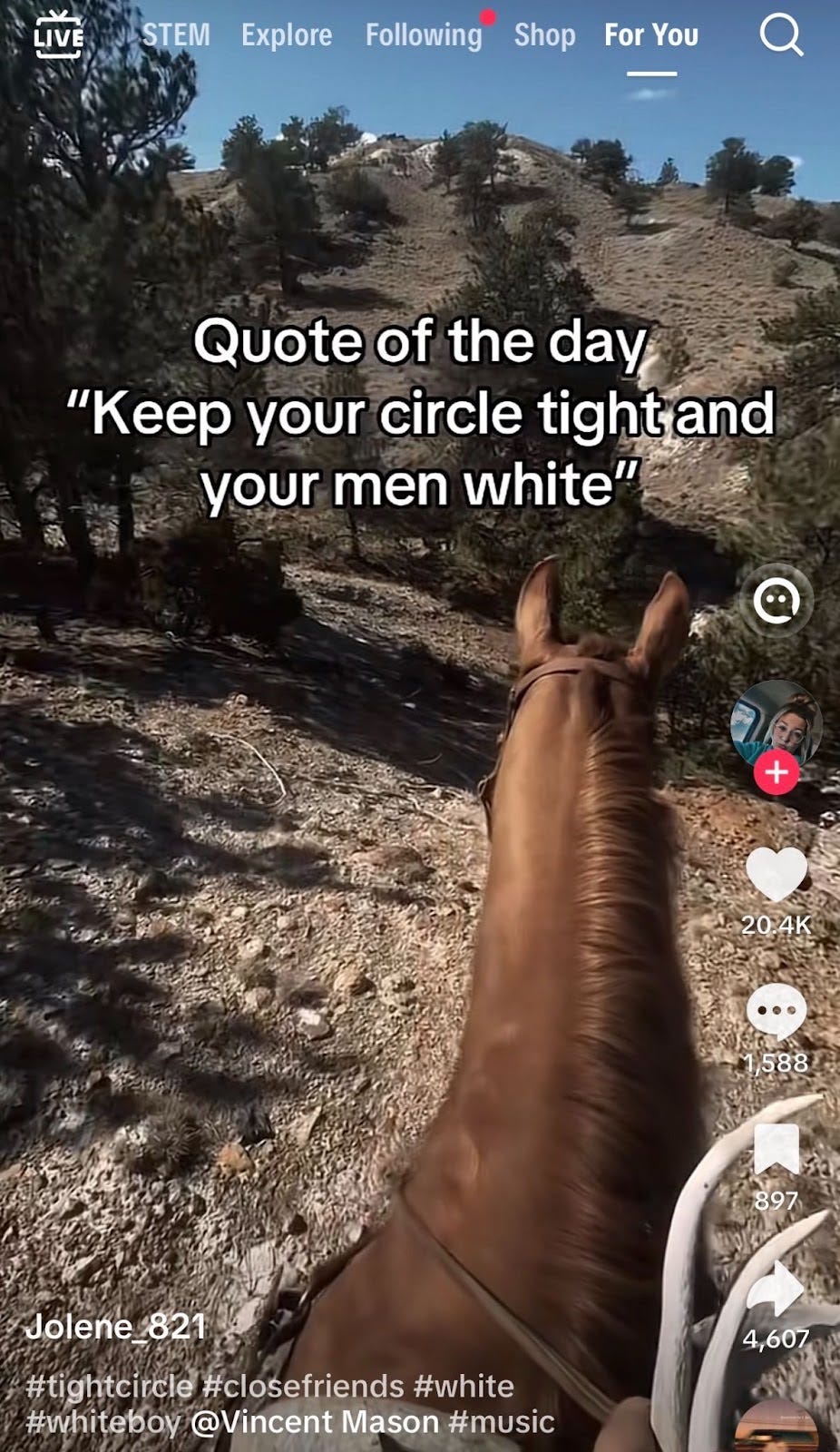 I could MAGA-fy a clean TikTok in half a day and arrive at white-supremacist material by the next – because that’s how the product is designed to perform.